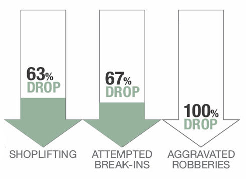 Plettenberg Bay, South Africa: After distribution with police of The Way to Happiness in English, Afrikaans and Xhosa, shoplifting fell 63%, attempted business break-ins 67% and aggravated robbery 100%.